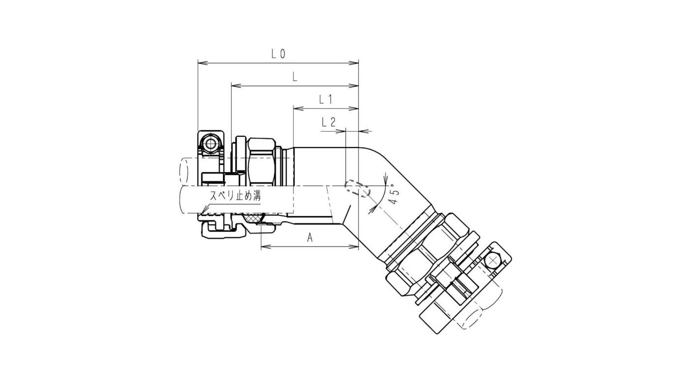 SKX 異種管用 SKX11 1/4°エルボ【ポリ管×塩ビ管用】 略称:SKX-11L 呼び径 各部寸法 A LO L L1 L2 P40×V40 75 117 93 52 7 P50×V50 55 98 74 23 12